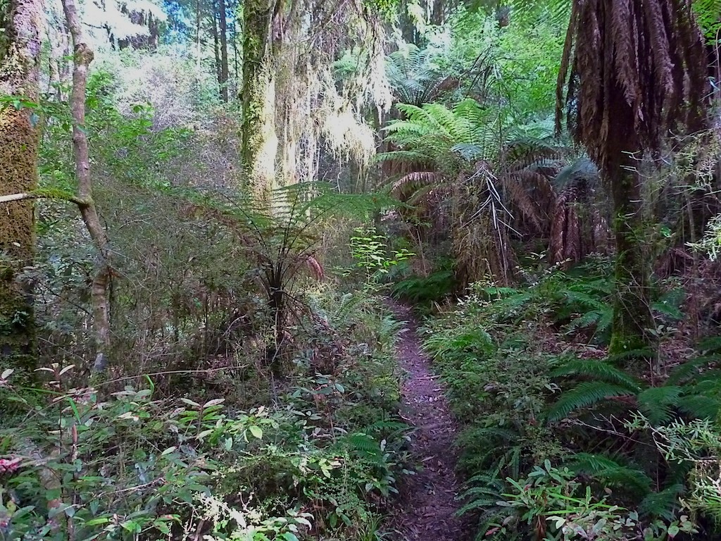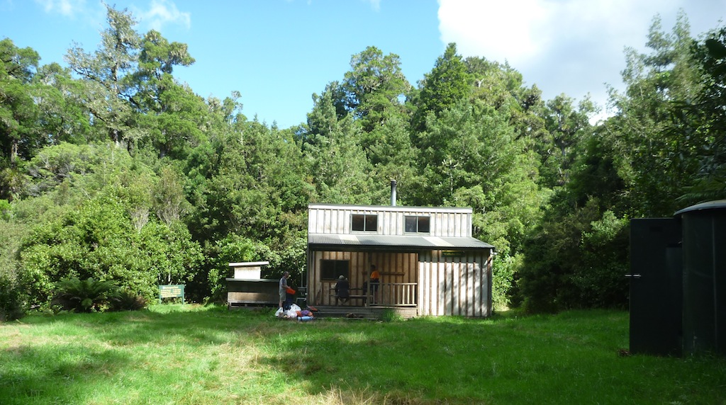 Szegény irodista vállaimnak nem tett valami jót a (nem valami jó kölcsön) zsák súlya, és az általános fizikai állapotom, súlyosbítva a puska cipelésével, de így járnak a puhányok. A viszonylag optimista kiírás szerint az úttól 3 óra alatt lehet elérni a kunyhót, ami tényleg nem tűnt valami soknak, valószínűleg egy kis hátizsákkal és a puskával nem lett volna semmi kunszt, de nekem sikerült három és fél óra alatt a kunyhóhoz érnem, ahol a többiek már kedélyesen falatoztak. Nem véletlenül mondja minden brosúra, hogy legyél fitt a kiránduláshoz. A parkban egyébként három kategóriába sorolják az útvonalakat, az első a short walk, ide mehetnek a gyerekek is, kényelmes, nem leszel piszkos se és egy óránál nem hosszabbak. Aztán van a walking track, ezek is szépen kialalkított útvonalak, a pár percestől az egy napos hosszig. A legsúlyosabbak a tramping track névre hallgatnak a nagyjuk nincs kiépítve, ellenben lehet sziklás, saras, meredek, folyóbangázolós vagy mindezek egyszerre, túrázós tapasztalat szükségeltetik. Na melyikbe tartozik a mi útvonalunk? Hát persze.