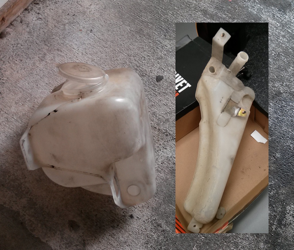 Szóval kiszedtem a tartályt, amelybe előző nap (ez a legjobb a receptekben is, nem? a felénél jutsz el odáig, hogy a „szósz amit már pihentettünk huszonnégy órát”) ecetes vizet töltöttem a feltételezetett vízkövekre való tekintettel, és amely megörvendeztetett azzal, hogy ha nincs rádugva a spricnikhez menő cső, akkor ömlik belőle a szaft a motortérbe. Még mielőtt kiszedtem volna kipróbáltam a pumpát, de amellett, hogy végül is spriccolt kicsit, hangosabb volt a kis elektromos izé, mint a 3.1-es dízel, úgyhogy gyanítom, hogy az ecettel már csak belöktem a korábban megásott sírba szegényt.